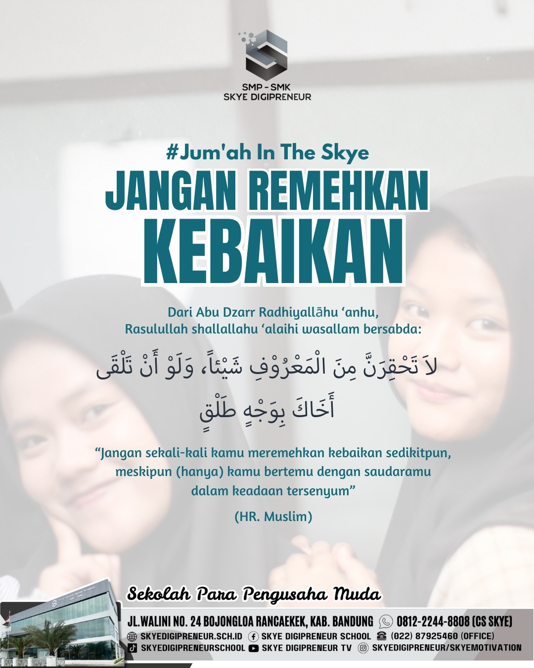 #JumahInTheSkye #JanganRemehkanKebaikan #SenyumItuSedekah #FridayReminder #JumatBerkah #HaditsNabi #InspirasiJumat #SkyeDigipreneur #KebaikanKecilBernilaiBesar