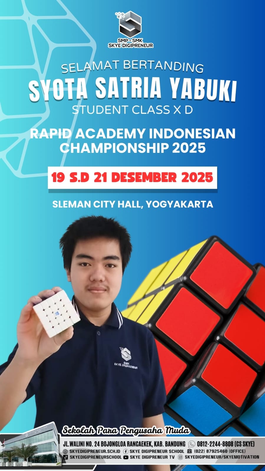 Keluarga besar SMK Skye Digipreneur dengan bangga mengucapkan selamat bertanding dan sukses kepada salah satu student terbaik, Syota Satria Yabuki (Class X-D), yang akan berlaga dalam Rapid Academy Indonesian Championship 2025. 🧩🔥